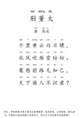 春chūn夜yè洛luò城chéng闻wén笛dí〔盛shèng唐táng〕李lǐ白bái谁shuí家jiā玉yù笛dí暗àn飞fēi声shēng,散sàn入rù春chūn风fēng满mǎn洛luò城chéng。此cǐ夜yè曲qǔ中zhōng闻wén折zhé柳liǔ,何hé人rén不bù起qǐ故gù园yuán情qíng。1/2春夜洛城闻笛〔盛唐〕李白谁家玉笛暗飞声,散入春风满洛城。此夜曲中闻折柳,何人不起故园情。〔注:选自《李白集校注》卷二十五(上海古籍出版社年版)。洛城,即洛阳。〕谁家玉笛〔玉笛:笛子的美称。〕暗飞声,散入春风满洛城。★译:是谁家精美的笛子暗暗地发出悠扬的笛声,随着春风飘扬,...